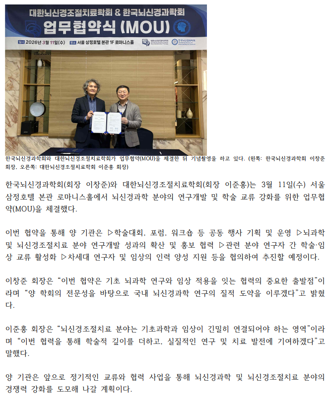 대한뇌신경조절치료학회 & 한국뇌신경과학회 업무협약식(MOU)